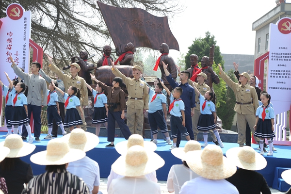 在城头镇董力生故居,党员们集中参加了连云港市2022年“小马扎巾帼流动课堂”启动仪式,现场聆听了《共产党人的情怀——习近平家风故事》《永远的小推车》《母亲的情怀》等感人故事,党员们还实地参观了董力生故居,感受支前模范感天动地的家国情怀。在董力生的雕像前,党员们面向党旗庄严举起右手,重温入党誓词。两名党员代表情真意切地向大家分享入党初心,表达勇担使命决心。